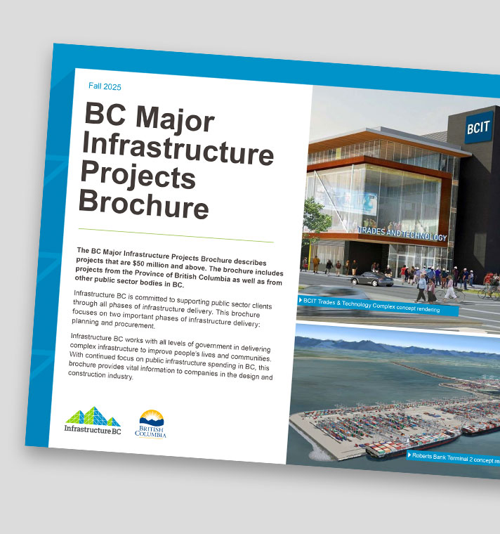 BC’s Major Infrastructure Projects Brochure offers a detailed and informed picture of upcoming infrastructure investment or major construction opportunities throughout the province.